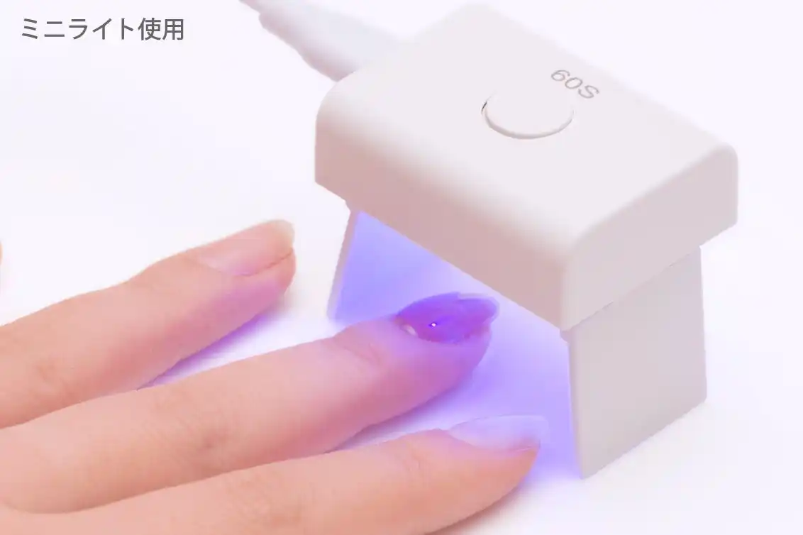 ジェルネイル用硬化LED/UVライトで硬化してください。 (硬化時間目安:約1分) |