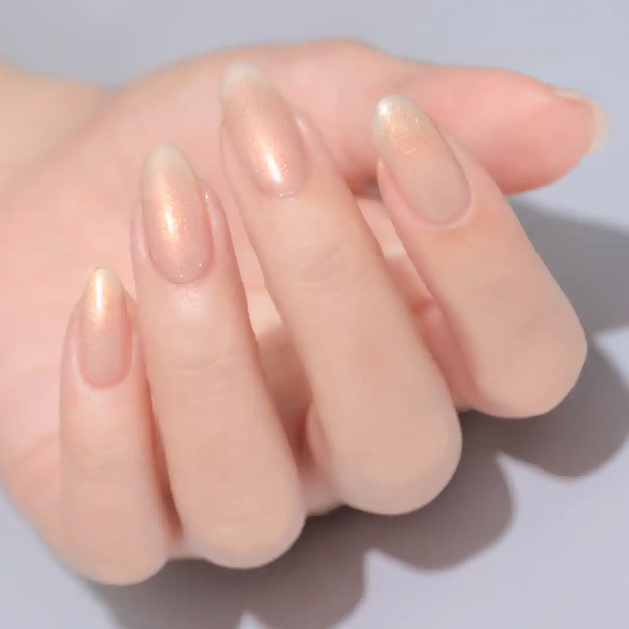 淡いブルーにオレンジ偏光ラメが瞬く遊び心あるニュアンスカラー |