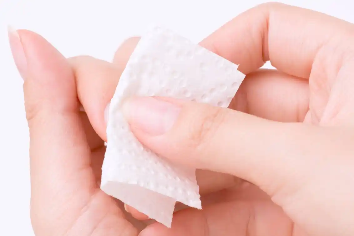 ネイルクリーナーやエタノールで爪の表面をふき取ります。エタノールをお持ちでない場合は、ハンドソープで爪を丁寧に洗って油分を取り除いてください。 |