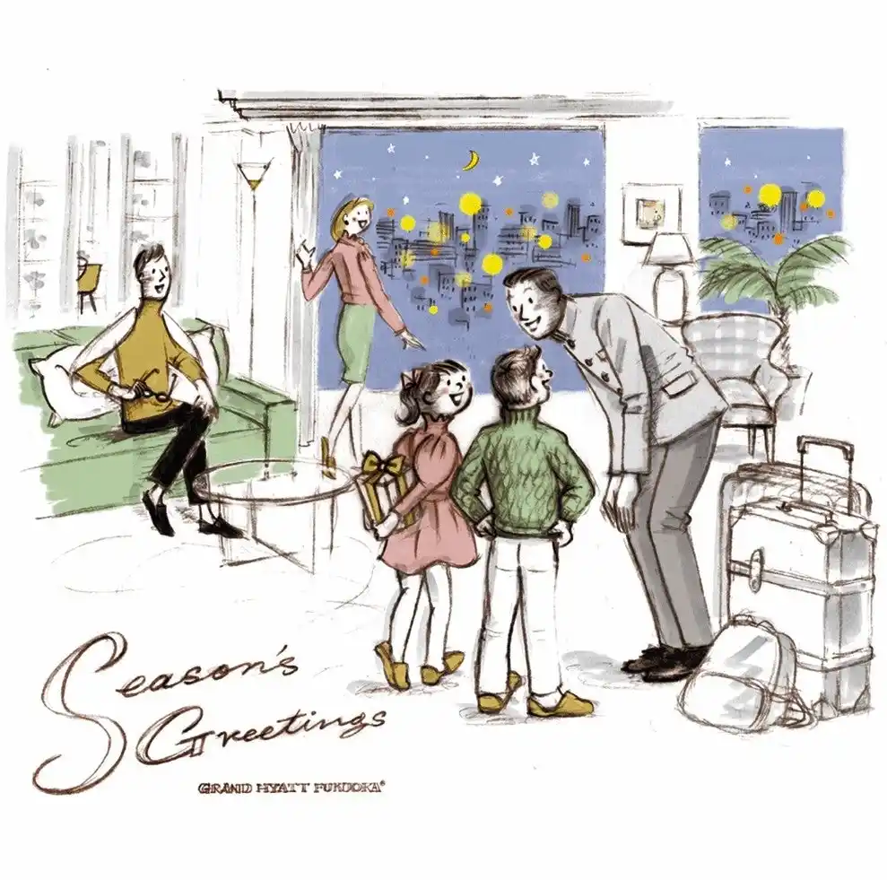 「グランド ハイアット 福岡での想い出」をテーマとしたエッセイコンテストを開催いたします。本コンテストでは「宿泊編」と「ウェディング編」の2部門を設け、それぞれの視点からの想い出を募集いたします。ご家族とのひととき、忘れられない滞在、そして人生の節目となるウェディングの記憶--お客様一人ひとりの物語が、グランド ハイアット 福岡の新たな魅力として紡がれていきます。応募作品の中から選ばれた受賞作品には、宿泊券を進呈するとともに、ハイゼアスタジオの永野敬子さんのイラストを添えてSNS等でご紹介いたします。皆さまの想い出が、グランド ハイアット 福岡の次の30年へと続く、新たな歴史の一部となることを願っております。 |