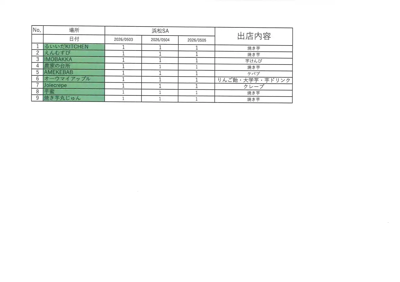 東海地方を中心に延べ44万人以上を集めているフードイベント芋フェス!のゴールデンウィーク開催が発表された。2026年5月3日~5日の3日間開催で、場所は新東名 NEOPASA浜松 下り での開催となる。出店者は全部9店舗になります。注目は焼き芋としてモンドセレクション金賞を世界で初めて受賞した店舗と2025年12月に発表された芋フェス!大賞受賞の店舗が中心となる。 |