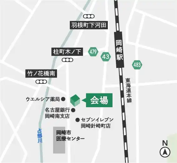 ※公共交通機関をご利用の方 JR東海道線「岡崎駅」徒歩14分 名鉄東部交通バス「藤田医大岡崎医療センター前」停より徒歩4分 |