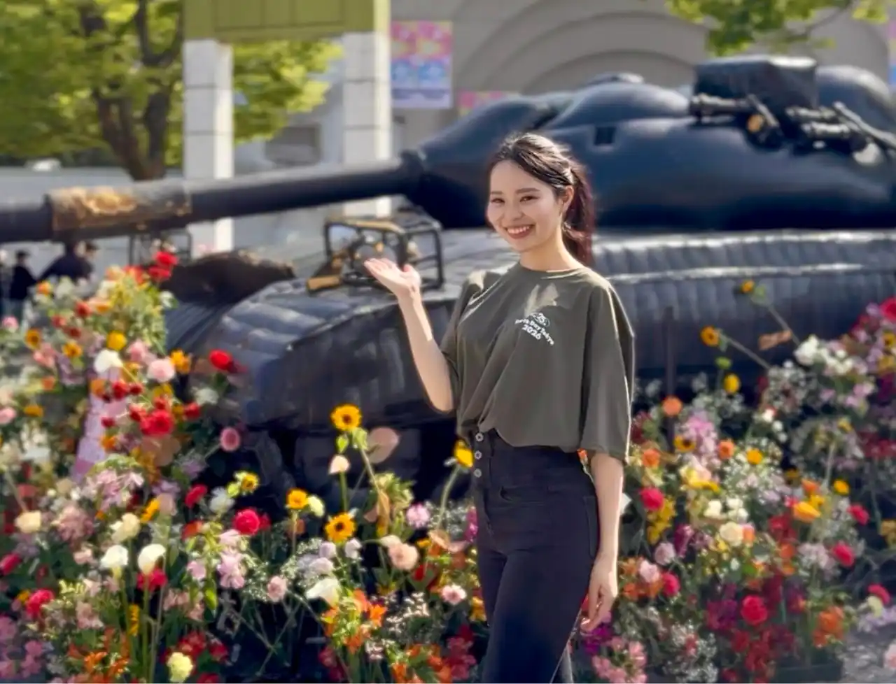 また、当日は当社と関わりのあるMiss Planet Japan 2026 東京代表 宮田理央さんがステージ司会として登壇し、イベントを盛り上げました。会場内では、戦争の象徴である戦車に平和の象徴である花を手向ける参加型の企画にも関わり、来場者とともに環境や平和について改めて考えるきっかけになったと語っています。 |