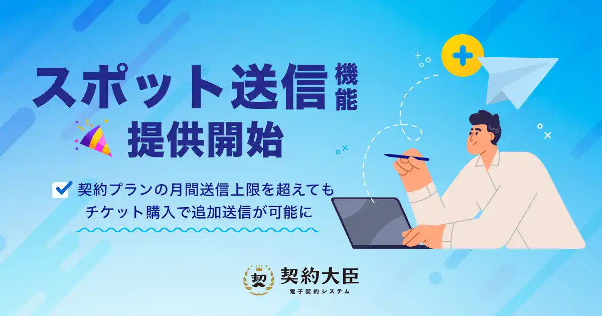 【株式会社TeraDox】 電子契約サービス「契約大臣」、契約書の月間送信上限を超えても追加送信が可能な「スポット送信機能」の提供を開始
