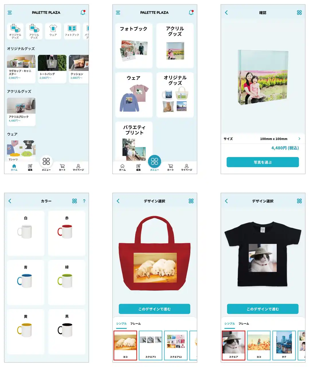 「何を作るか迷ってしまう」時間も、楽しさに変わります。独自設計のUI により、お気に入りの1 枚からフォトブック、T シャツ、マグカップなど複数のアイテムを1つのアプリでまとめて注文が可能。 |