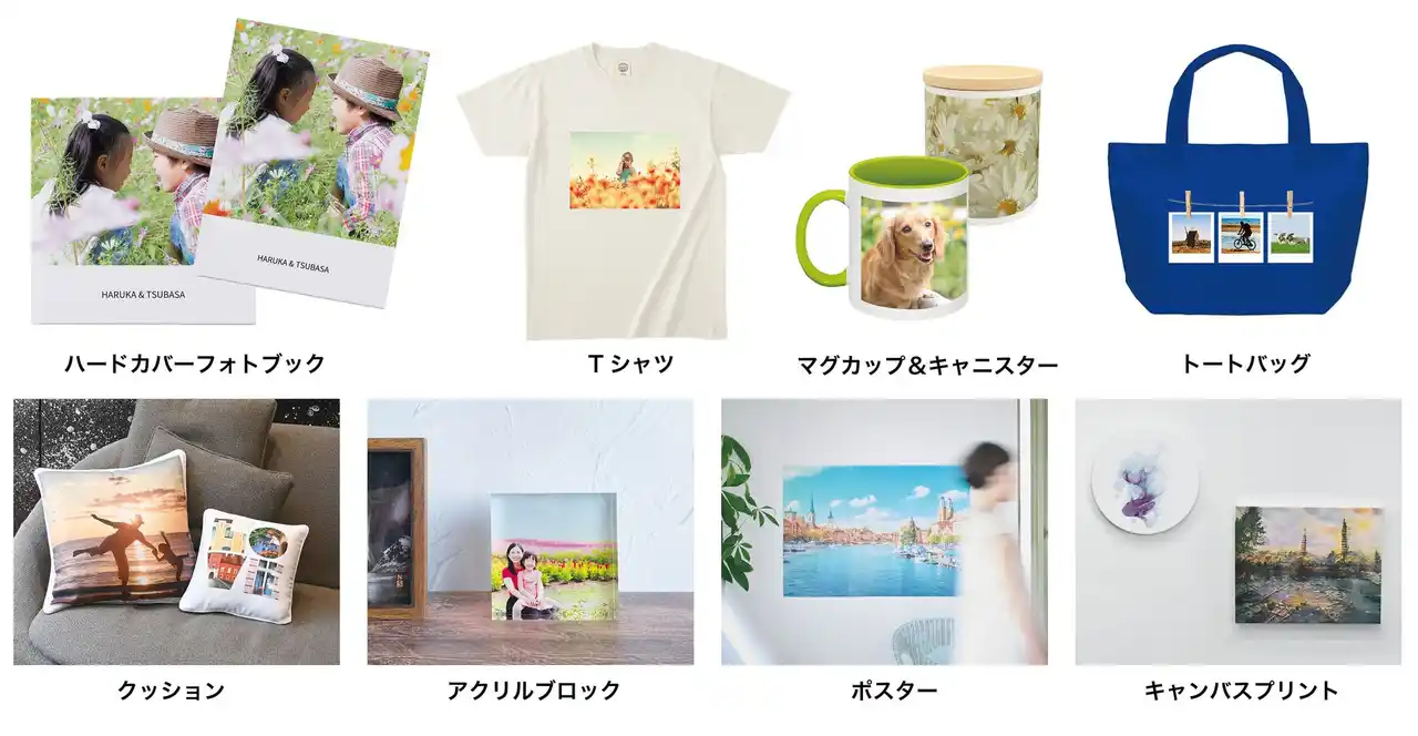 フォトグッズの注文を自宅で完結できるサービスです。 |