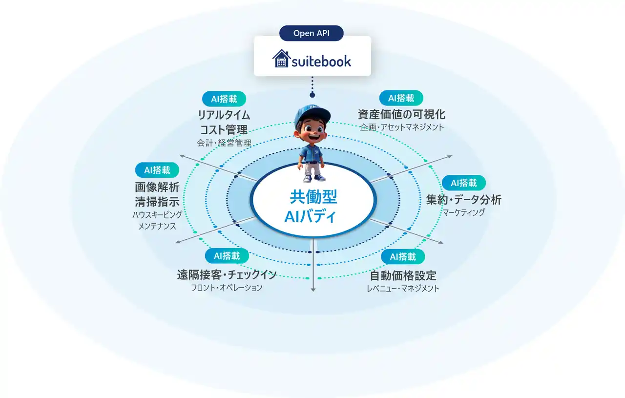 | 今回の取り組みにより、ブランドを跨いだ運営基盤の統一を推進します。深刻化する人手不足への対応と、データ駆動型の高度なホテル経営を両立させるとともに、「suitebook」を中核としたAXプラットフォームとして、宿泊業界の次世代インフラ構築を加速させてまいります。 | ||||||||||||