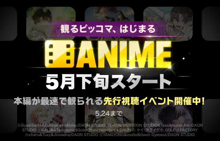 『ANIME』は、ピッコマがこれまで展開してきたマンガ・ノベル作品の配信を基盤に、“読む体験”から“観る体験”へと拡張する新たなカテゴリです。ピッコマの人気原作IPをもとに、映像表現を取り入れることで、“好きな作品”を新たな形で楽しめる体験を提供します。 |