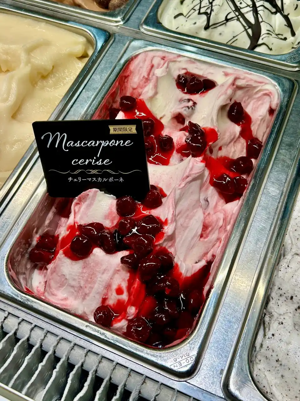 濃厚なマスカルポーネのジェラートに艶やかに香るチェリーのコンフィチュールを混ぜ込みました。 |