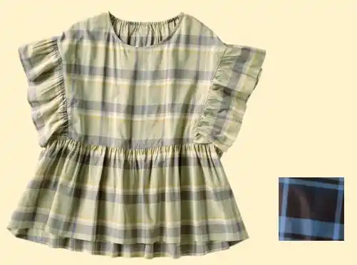 | 右上:ペプラムブラウス(カラー:グリーン系) | |||