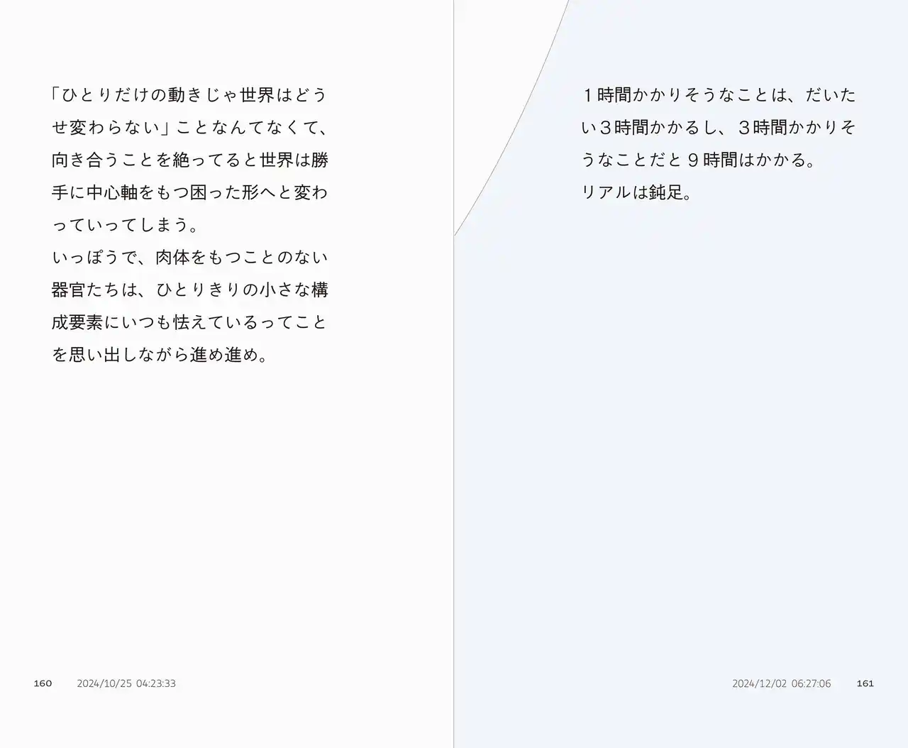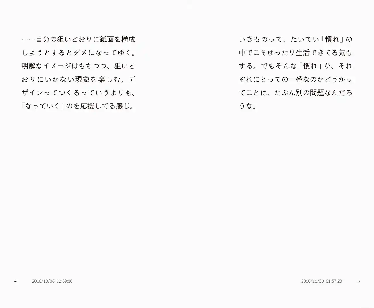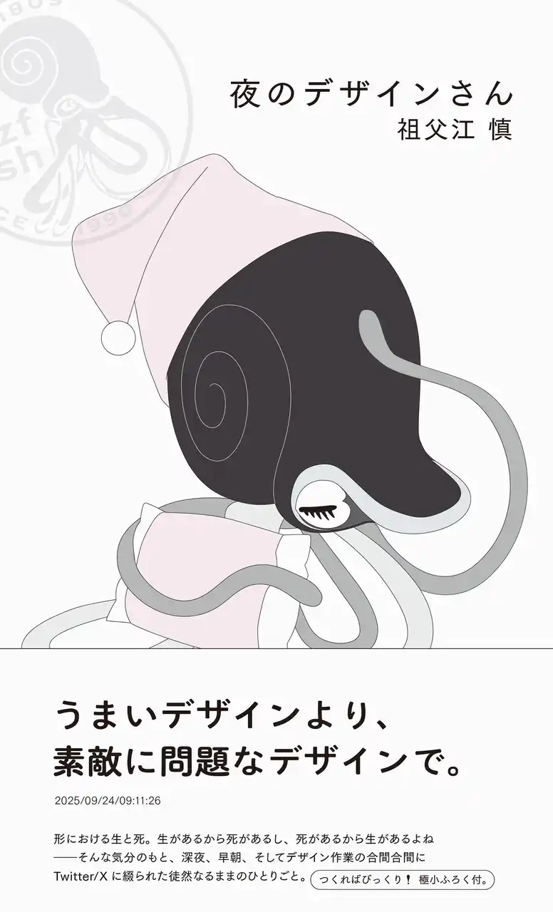 デザイナー祖父江慎が15年にわたりTwitter/Xに綴ってきた徒然なるままのひとりごと。「人間にだけじゃなくて、カエルにだって届くデザインがしたい。」--そんな気分のもと、深夜、早朝、そしてデザイン作業の合間に書いたものを集めています。がんばって制作すれば極小の「夜のデザインさん」になるふろく付。 |