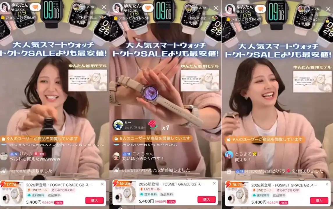 また、先日実施したスマートウォッチのTikTok Shopライブ配信では、約4時間の配信で以下の成果を記録いたしました。 |