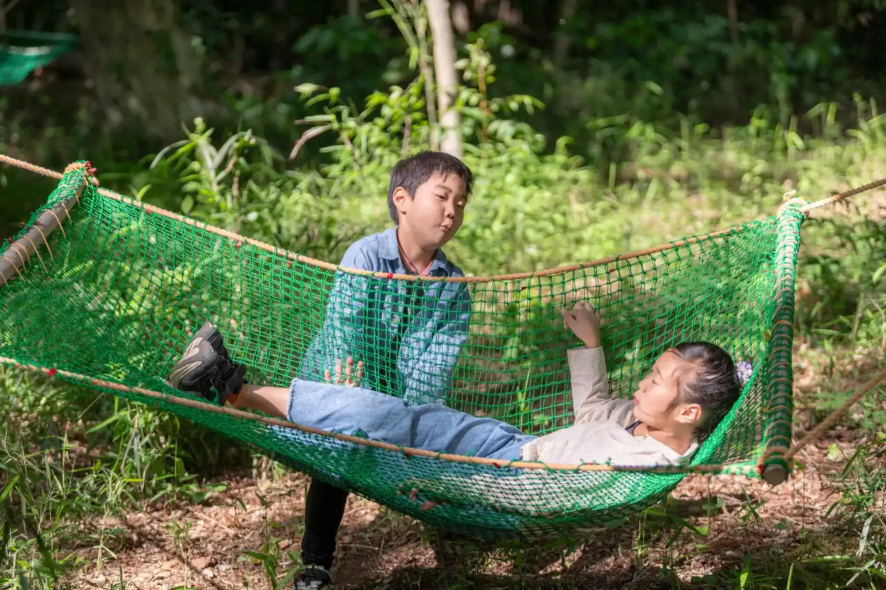 住宅街のすぐそばの森で、森林浴を楽しんだり、里山ボランティアの皆さんと一緒に工作をしたり、ハンモックやブランコなどの遊具で遊ぶなど、自然を満喫できるイベントです。 |
