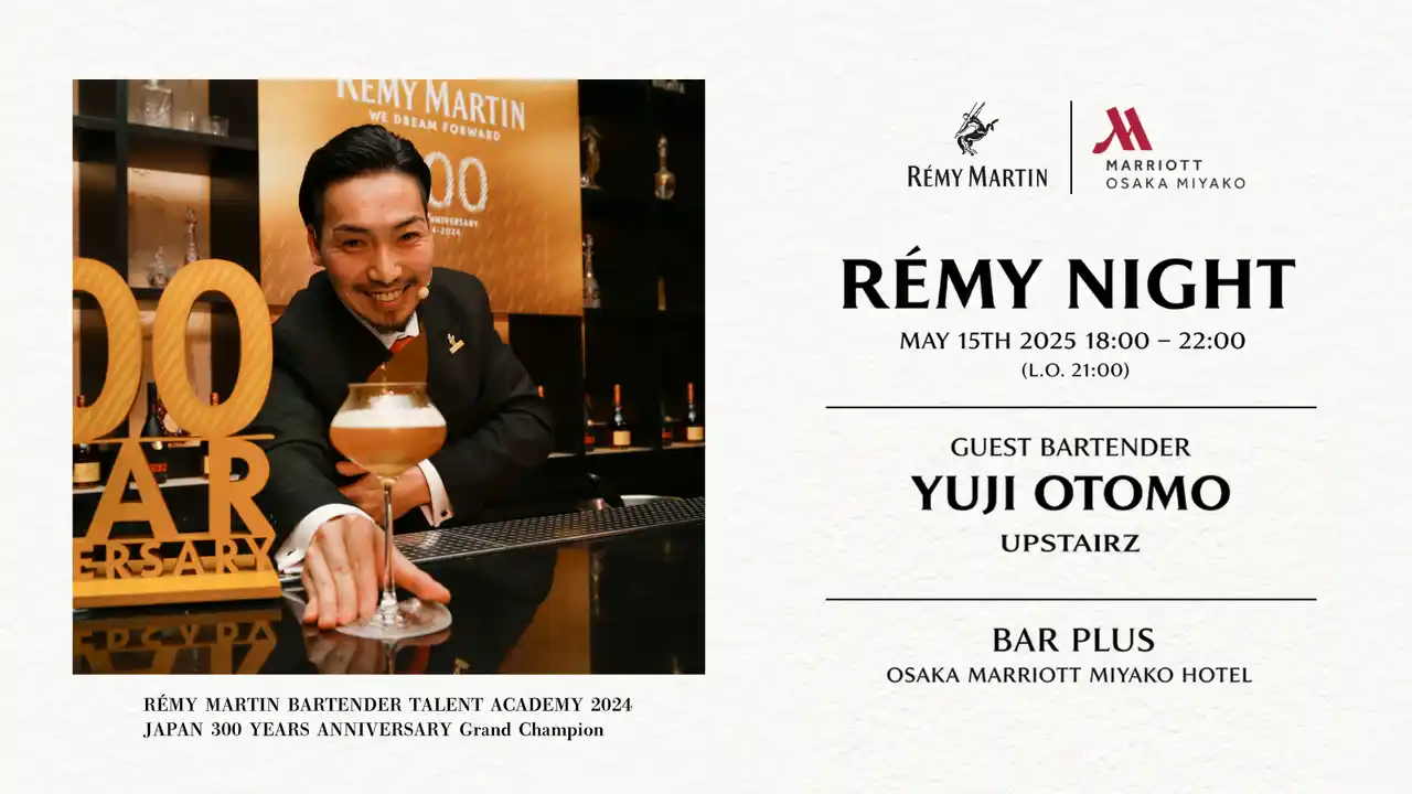 ”量よりも質"という観念を軸にサステナブルな栽培法を取り入れ、ワイン&スピリッツ業界に革新をもたらすレミー コアントロージャパン株式会社(東京都港区/ゼネラルマネージャー ザビエ・タロ)が展開するコニャック・フィーヌ・シャンパーニュ レミーマルタンは、大阪マリオット都ホテル「BAR PLUS」(バー プラス)にて、大伴祐司氏をゲストに迎え、スペシャルカクテルをお楽しみいただける一夜限りのイベントを2026年5月15日(金)に開催いたします。