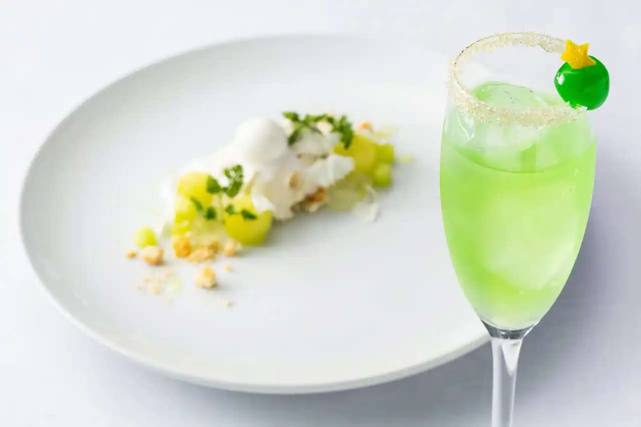 カクテル「Melon Planet」とコースデザート |
