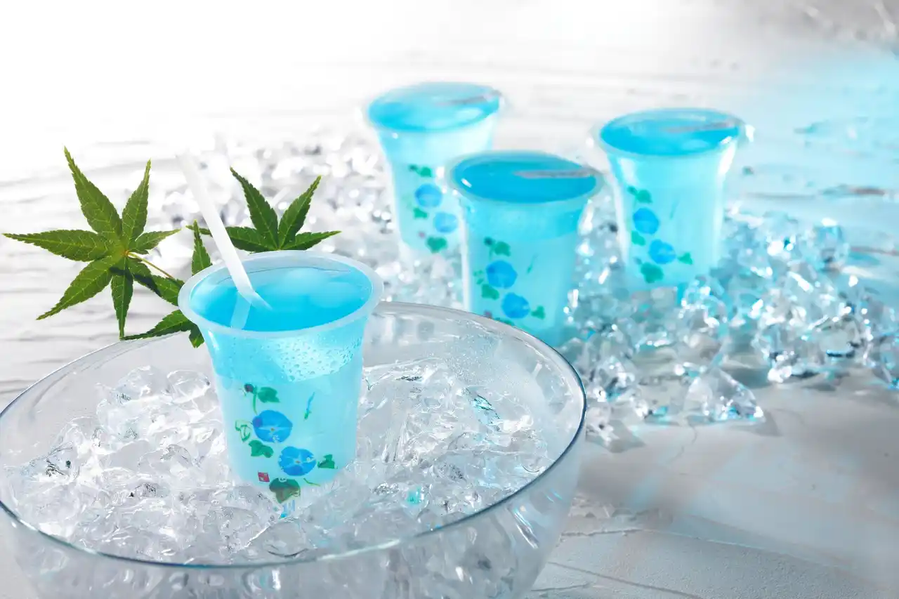 夏の風物詩『ラムネ』の味わいを、爽やかな飲むゼリーに仕立てた期間限定の人気商品。中には、まるで瓶入りラムネに浮かぶビー玉のような、真ん丸のラムネボールも入っています。冷蔵庫で冷やしてお召し上がりくださいませ。 |
