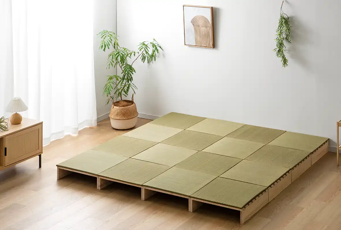 | パレットにぴったり収まる畳には、自然の調湿・消臭効果がある「天然い草」を使用しています。 | |||||||||||