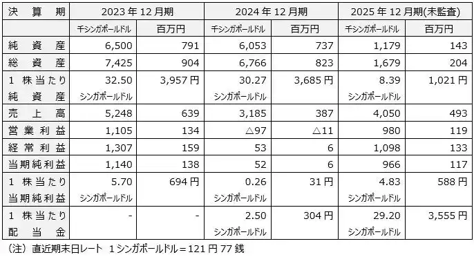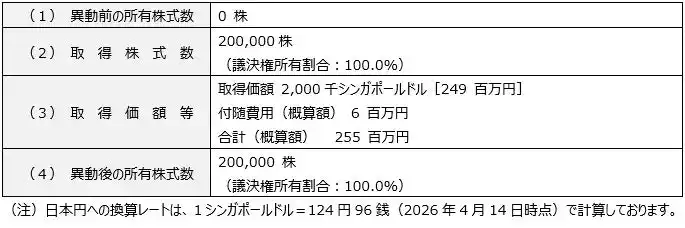 (注2)日本円への換算レートは、1シンガポールドル=124円96銭(2026年4月14日時点)で計算しております。 |