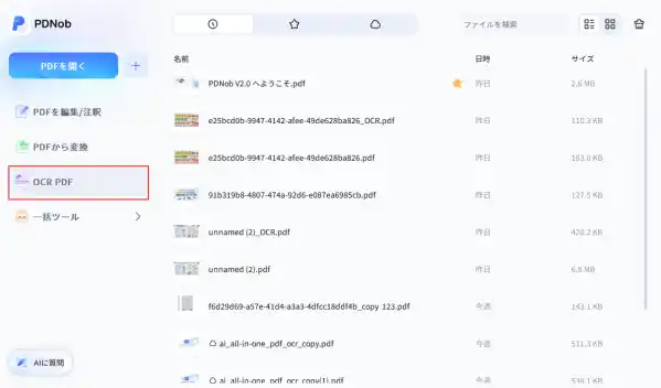①・ソフトを起動し、「OCR PDF」機能を選択