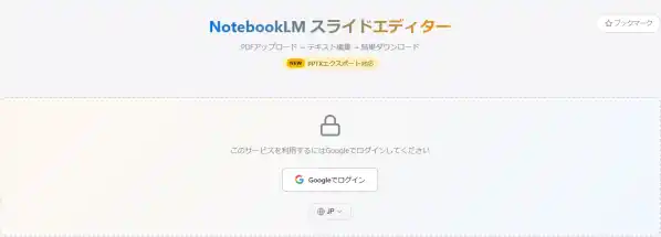 ①・専用の「NotebookLMスライドエディター」にアクセスし、Googleアカウントでログイン