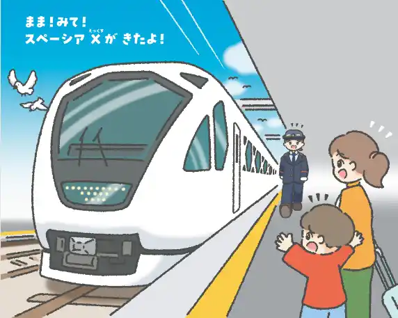 ママと一緒にお出かけした駅で、あこがれの特急スペーシア Xの運転士に出会った主人公・りくくん。運転士にもらった“まほうのシール”をきっかけにまさかの運転席へ。 |