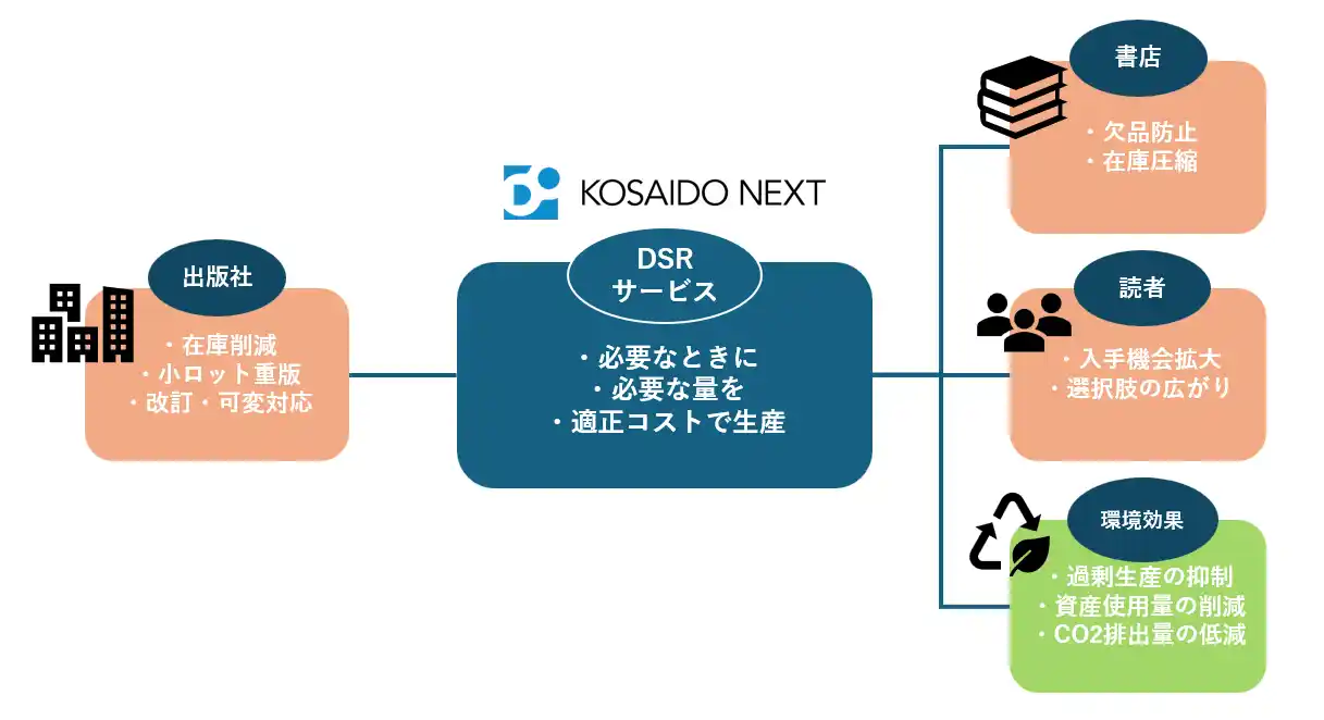 株式会社広済堂ホールディングス(東京都港区、代表取締役社長 常盤 誠)のグループ会社である株式会社広済堂ネクスト(東京都港区、代表取締役社長 常盤 誠、以下「広済堂ネクスト」)は、出版社業界の課題に対応する新たな印刷サービス「DSR(デジタルショートラン)サービス」を2026年9月より開始いたします。 |