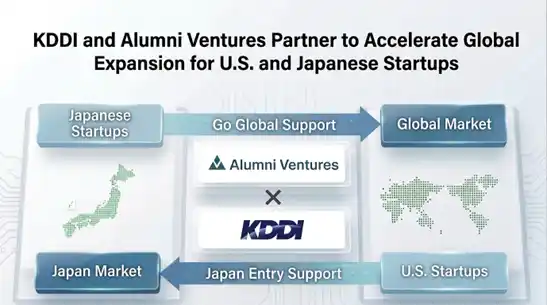 " Through our partnership with Alumni Ventures, KDDI aims to build an environment that seamlessly enables Japanese startups to expand overseas and U.S. startups to enter Japan, while simultaneously elevating the investment and business development skills of KDDI employees to a global standard. We expect this partnership to be a massive catalyst for the development of the U.S. and Japanese startup ecosystems and the cultivation of human resources. " |