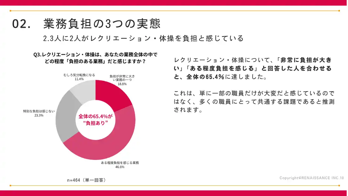介護職員の65.4%がレクリエーション・体操業務を「負担あり」と回答 |