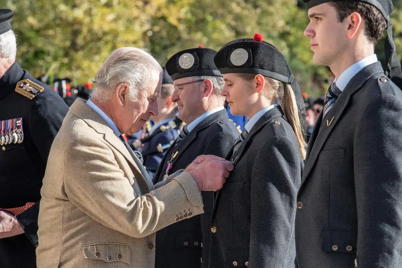 HM King Charles III presenting Gordonstoun students with Coronation Medal |
