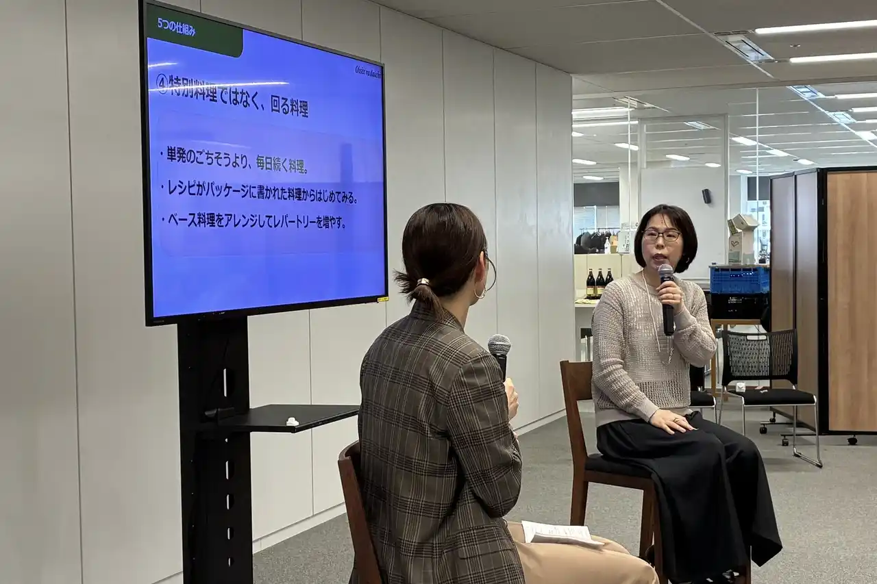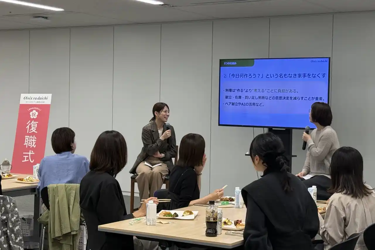 | 復職直後は「完璧にこなせない自分」への罪悪感や、自分のケアを後回しにする孤立感が課題になりがちです。そこで、がんばりすぎない「完璧主義」からの解放をテーマに、知的家事プロデューサー・本間朝子氏と、2度の復職を経験し、現在は「デリOisix」のプロジェクトマネージャーを務める当社社員・荒川桃子とのトークセッションを実施しました。 | ||||||||||||||||