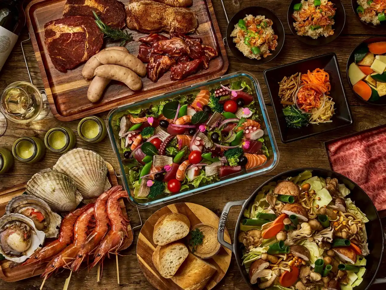 コース例:プレミアムプラン「選べるお鍋&海鮮BBQ」 |