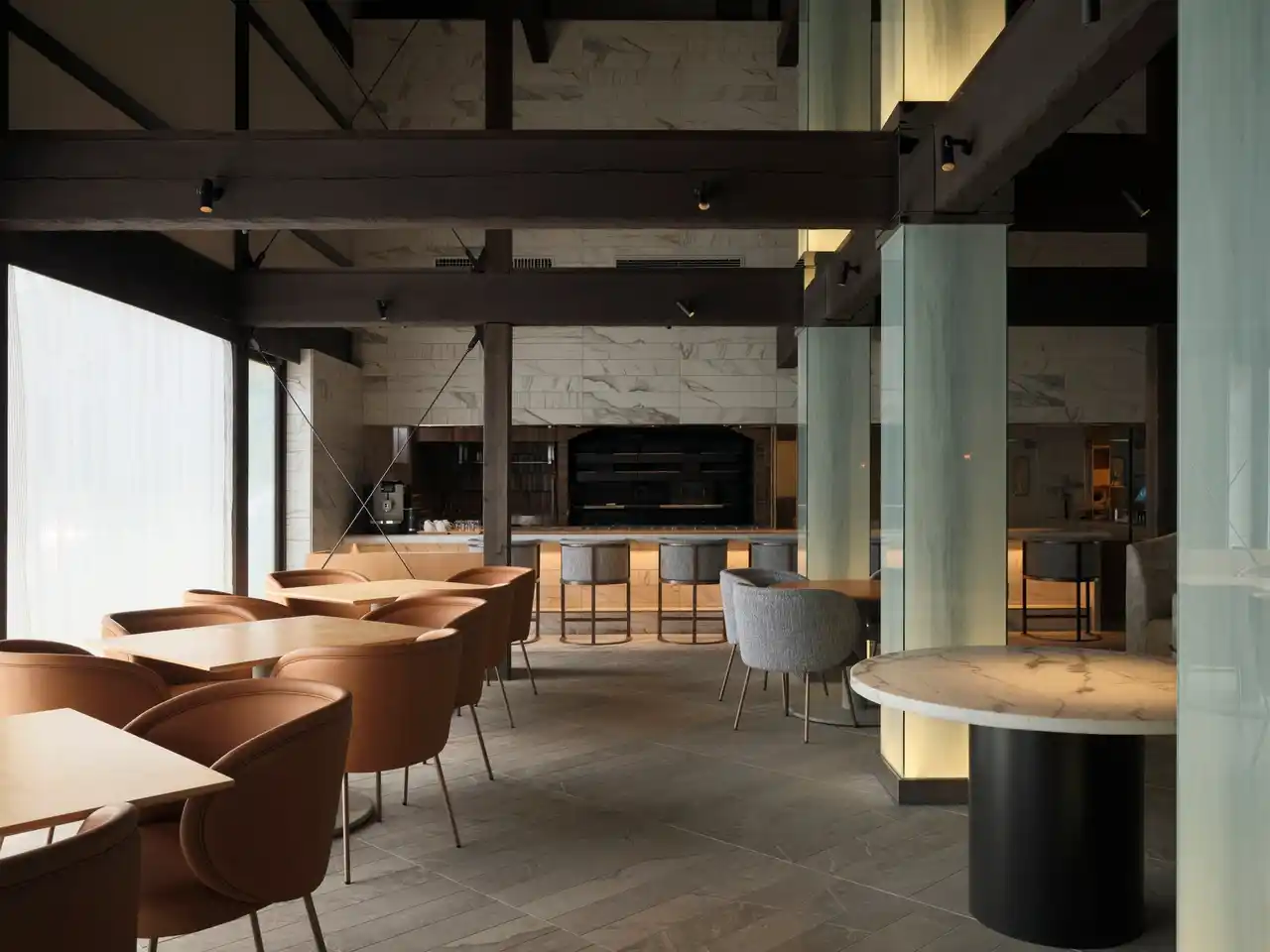 チェックインのお手続きやおつまみ・軽食販売などを行うGRAX CENTERでは、昼はコーヒー、夜はしっとりした空間でのフリーフローをご用意。グループ利用の集いの場としてもご利用ください。 |