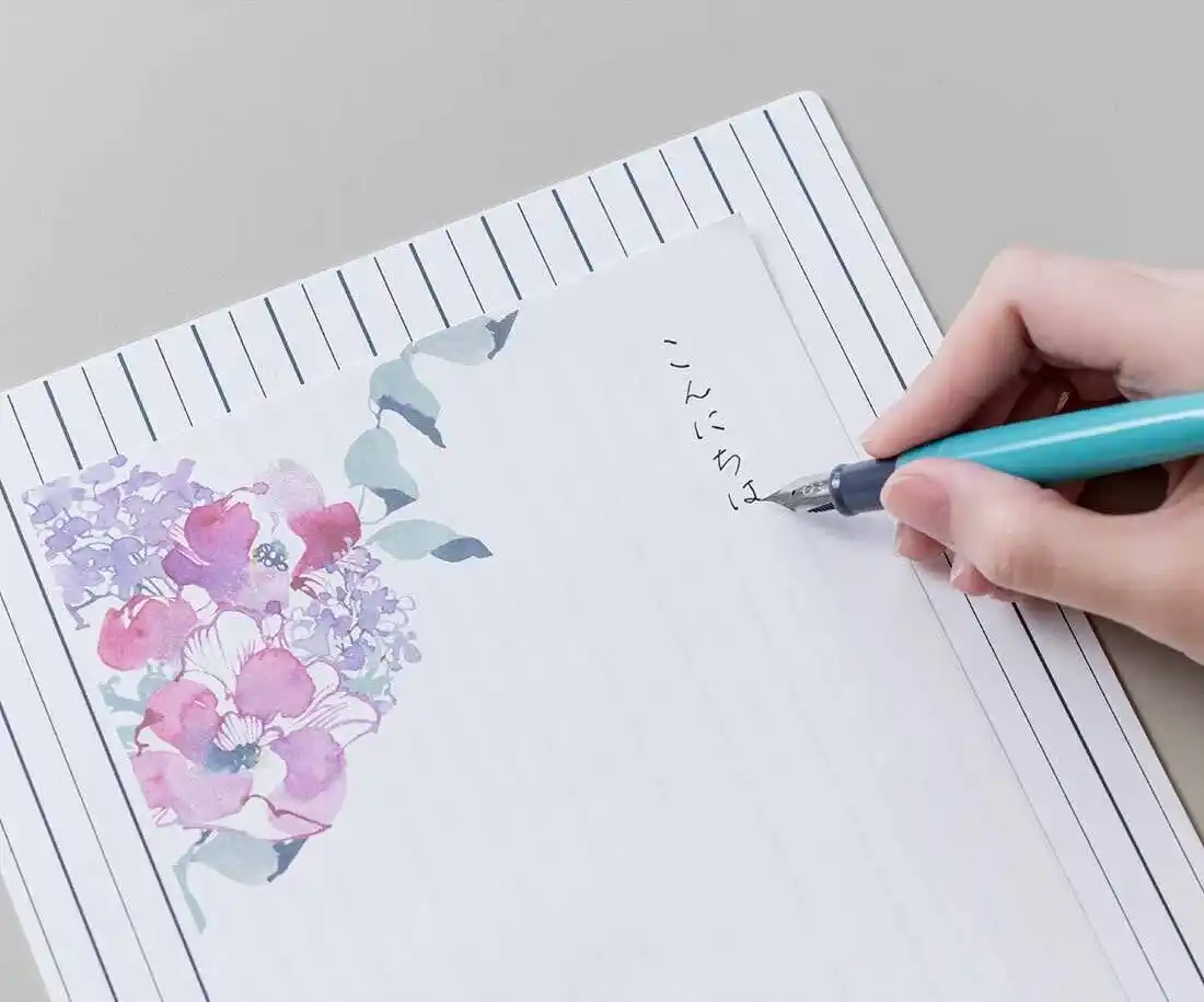 初心者の方にぴったりな一本です。最大の魅力は、セーラー万年筆ならではの技術が詰まった、驚くほどすらすらと書けるやさしいタッチ。なぞり書きや日記など、ペン先が紙を滑る心地よさをすぐに実感できます。カラーは〈アクアグリーン〉と〈ライラック〉の2種類。※インクは黒 |