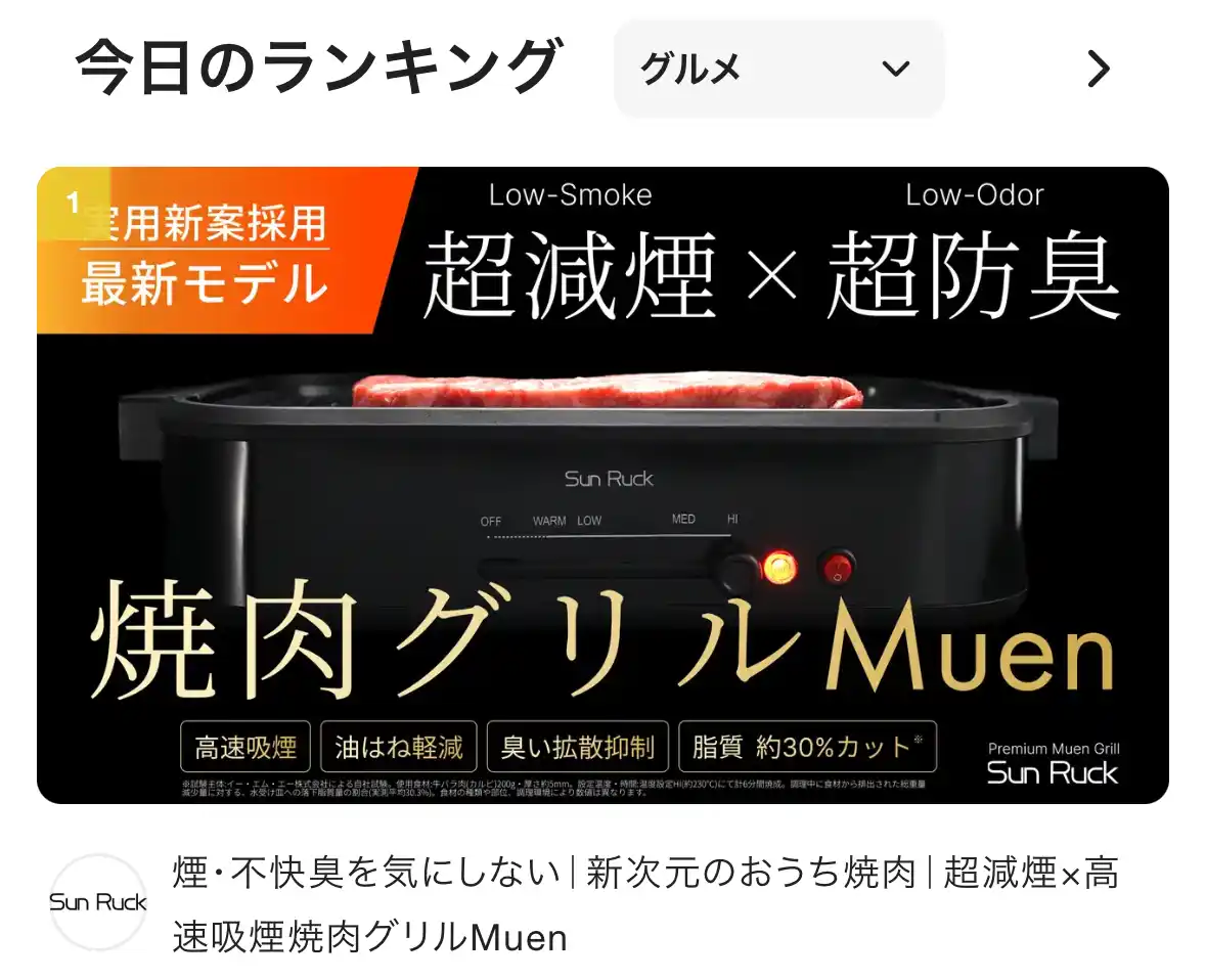 一芸特化型家電を数多く展開するプライベートブランドSunRuck(サンルック、本社:宮城県大河原町)から、超減煙×高速吸煙 焼肉グリル「Premium Muen Grill 無縁」のMakuake先行販売を2026年4月25日(土)より開始しました。 |