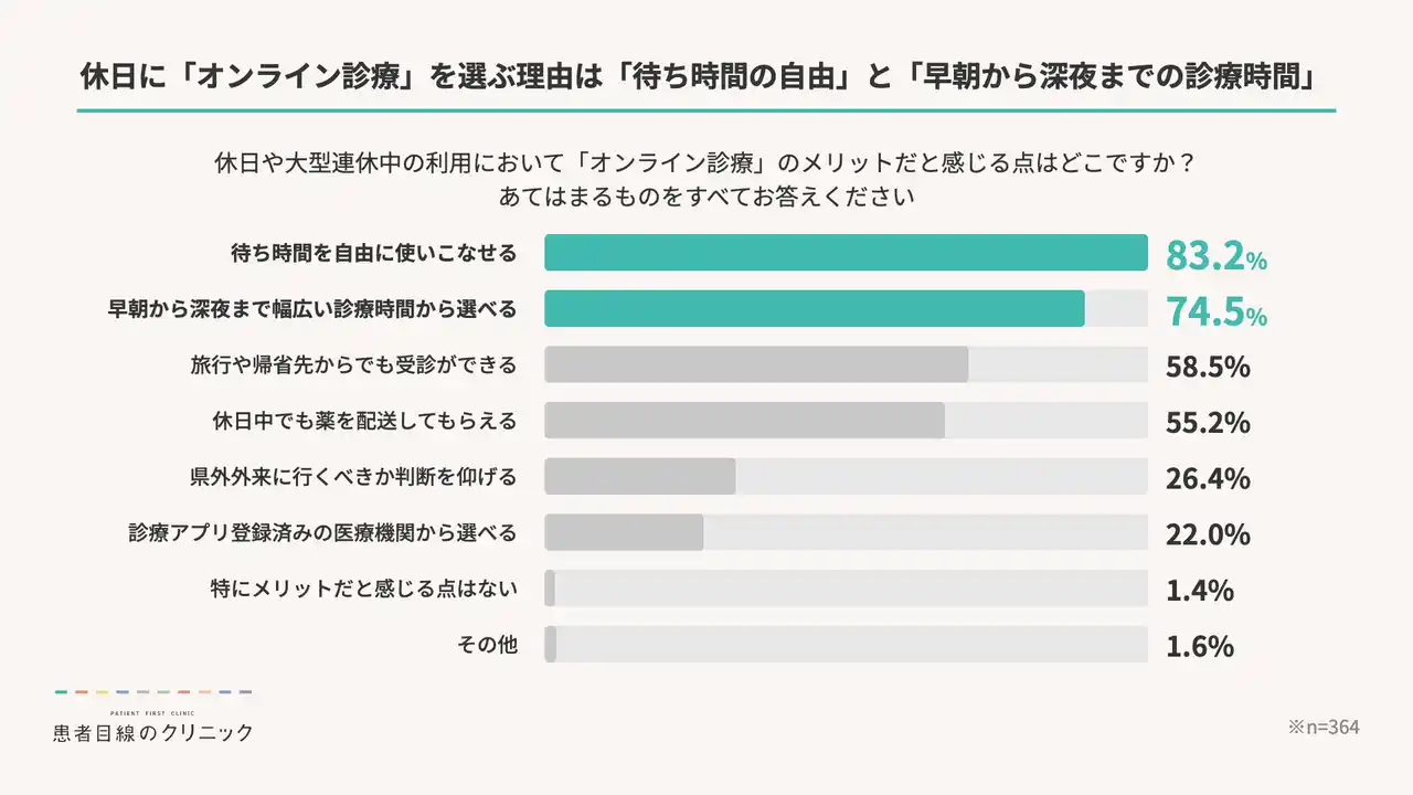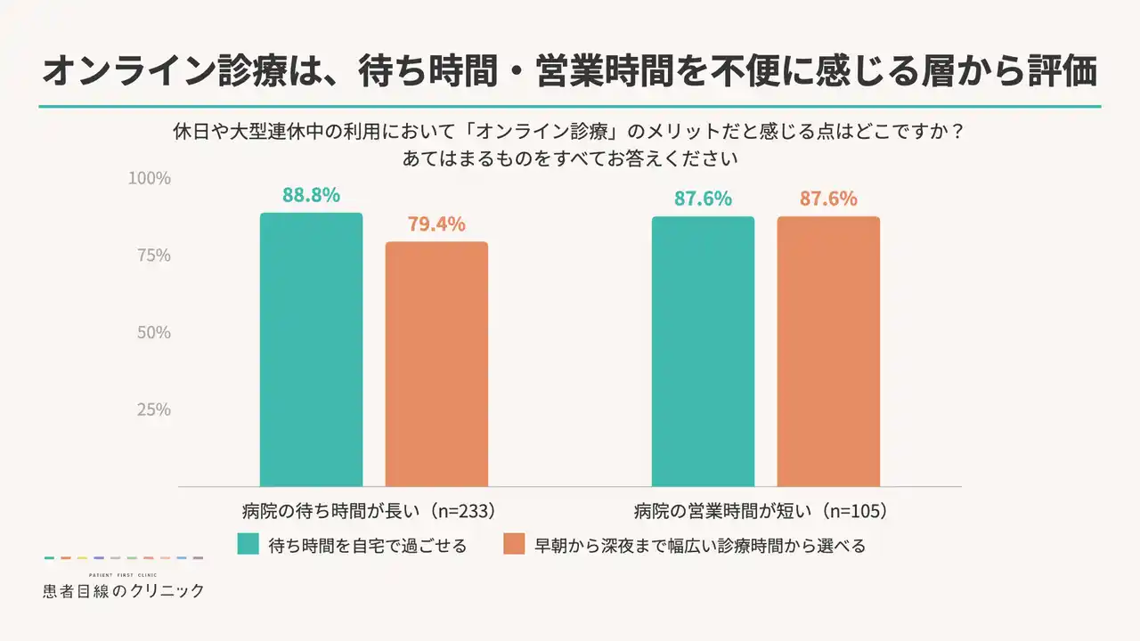 3. 休日の医療機関に「オンライン診療」を選ぶ理由は「待ち時間の自由」と「早朝から深夜までの診療時間」 |