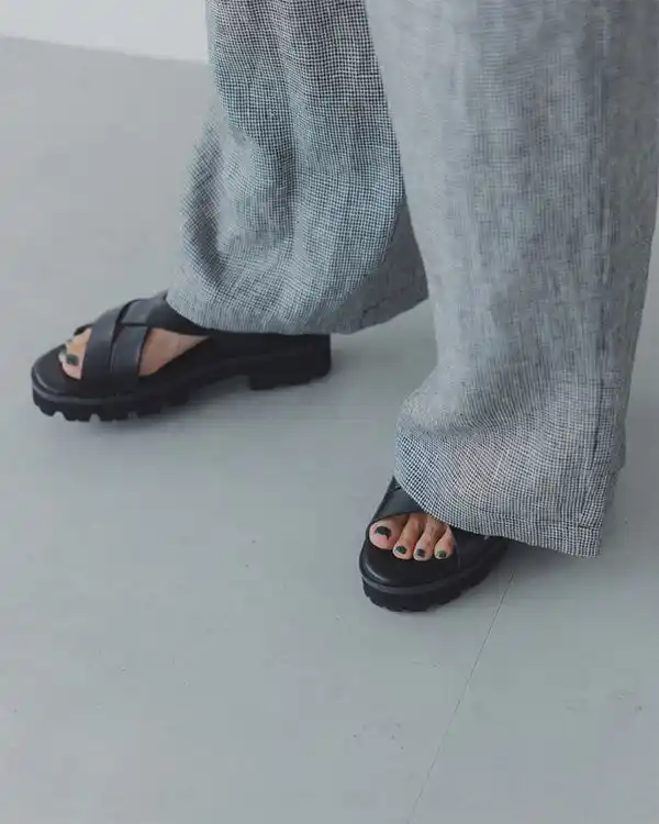 | 佐藤さん 「休みの日に、さらっと近所にお買い物へいくイメージで着てみました。ショルダーバッグをかけて、キャップと足元は黒のレザーサンダルを。 スポーティーな小物と合わせると、また雰囲気がガラッと変わりますよね」 | |||||||||