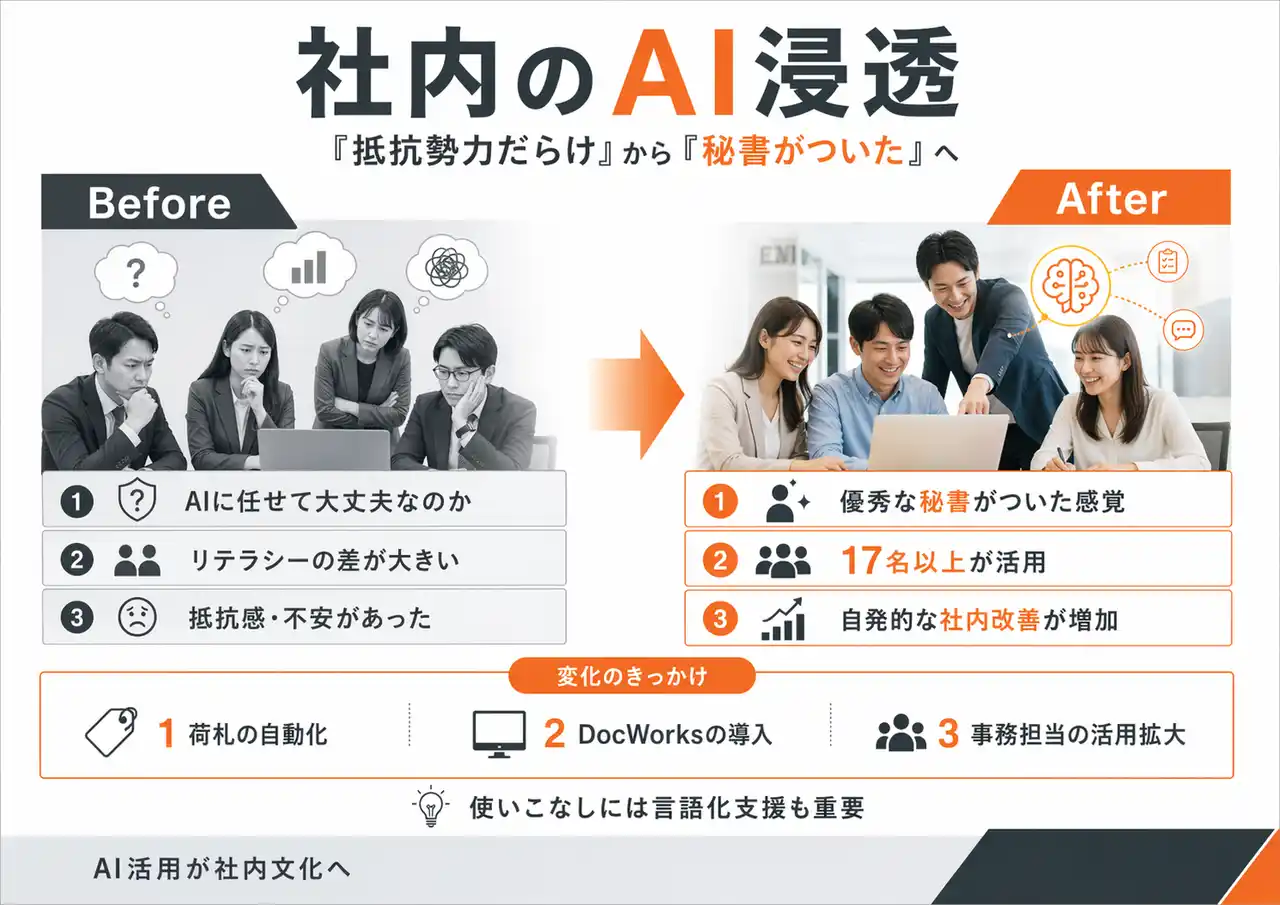 5. 社内のAI浸透 ── 「抵抗勢力だらけ」から「秘書がついた」へ |