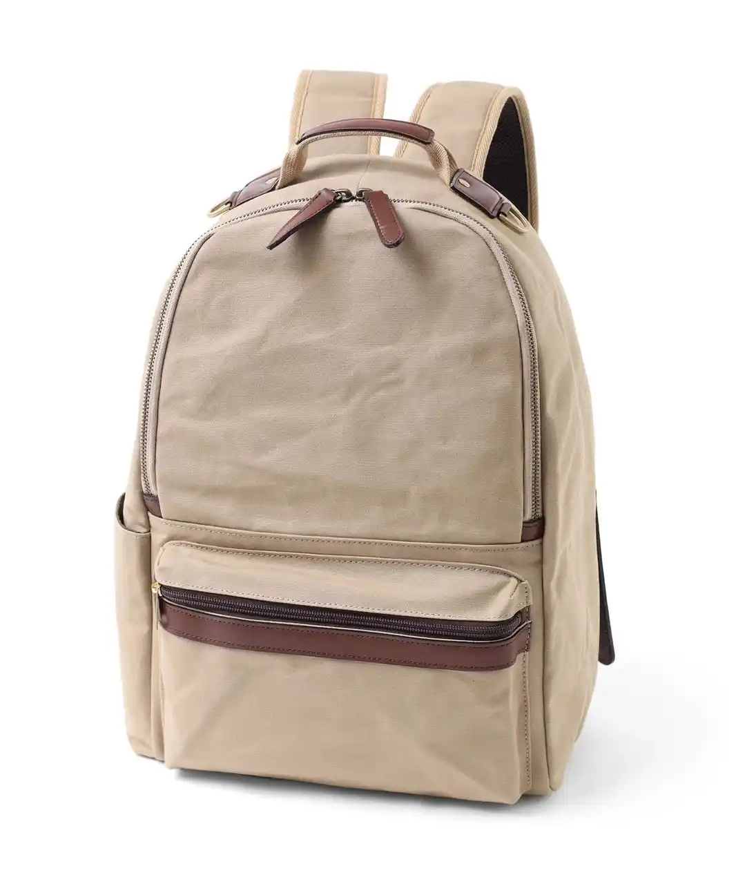 生地にロウを染み込ませ、防水性と独特の風合いを持たせるパラフィン加工を施した帆布リュック。 |