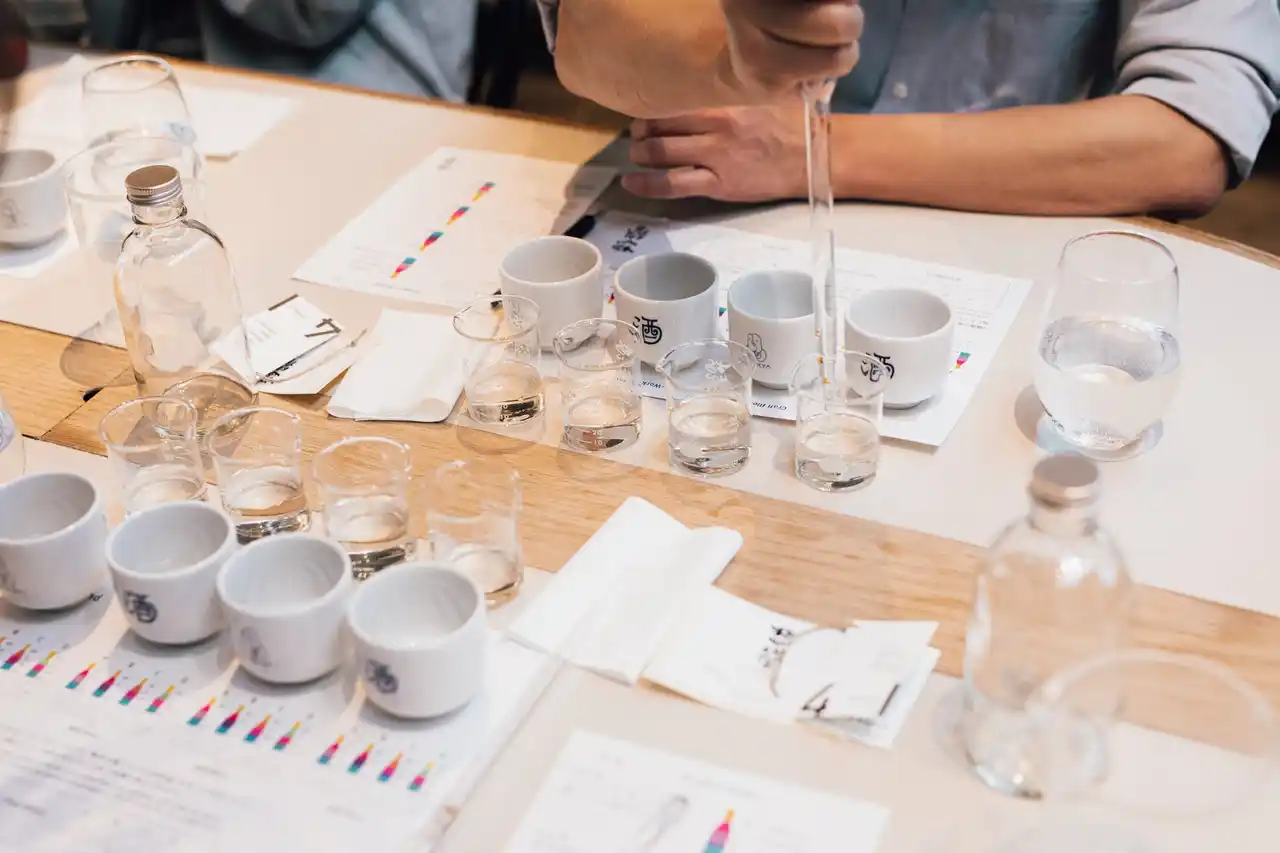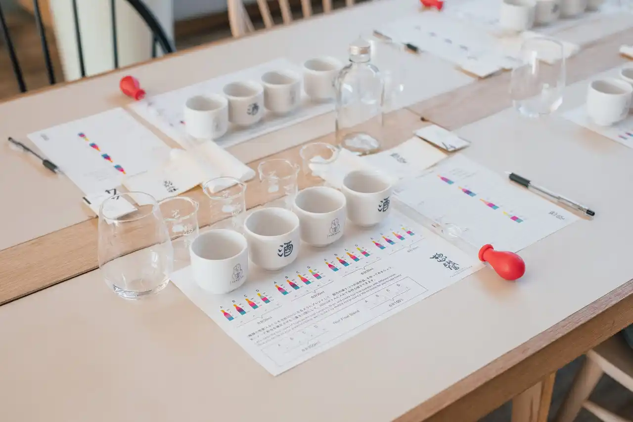このワークショップでは、参加者が自身をブレンダーとして体験し、精米歩合や酵母、熟成期間が異なる4種の原酒を用いて、自分だけの「黄金比」を探求します。 |
