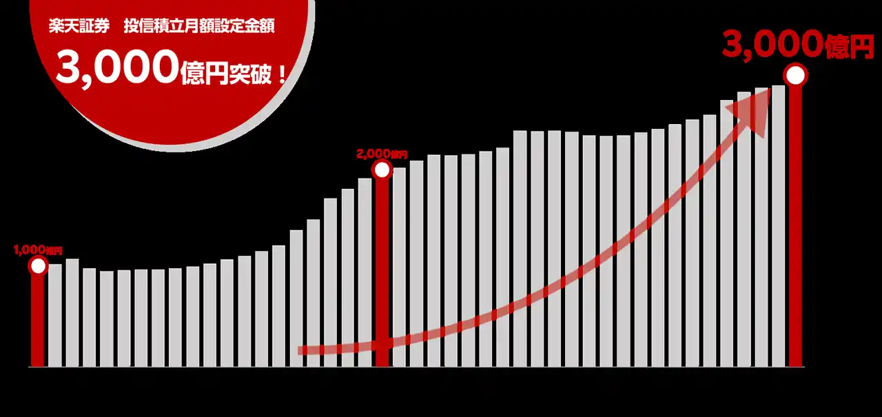楽天証券、投信積立の月額設定金額、3,000億円を突破!