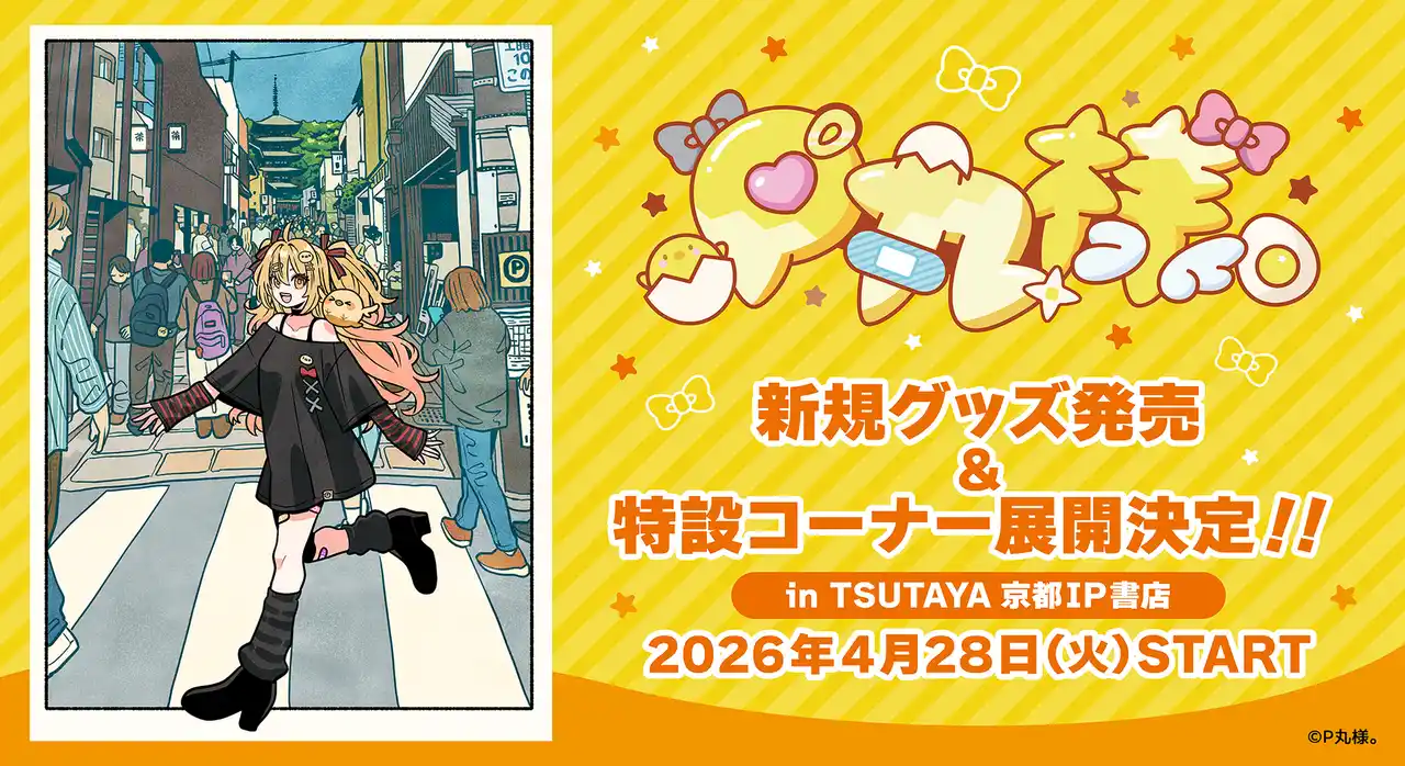 株式会社ClaN Entertainment(本社:東京都港区、代表取締役社長:大井基行、以下ClaN)は、2026年4月28日(火)より、TSUTAYA京都IP書店にて『P丸様。』の特設コーナーを開催することをお知らせします。マルチエンターテイナー『P丸様。』の新規コンセプトグッズが、2026年4月28日(火)よりTSUTAYA 京都 IP書店にて販売決定!店内では本企画の特設コーナーを展開し、対象商品をご購入のお客様には購入特典ノベルティもご用意しています。