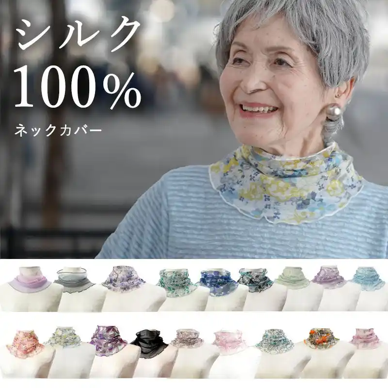 肌に優しいシルク100%のメッシュ素材が首元を優しくカバー。これからの季節のUVケアとして、ファッションのアクセントにもなる実用的な小物です。 |