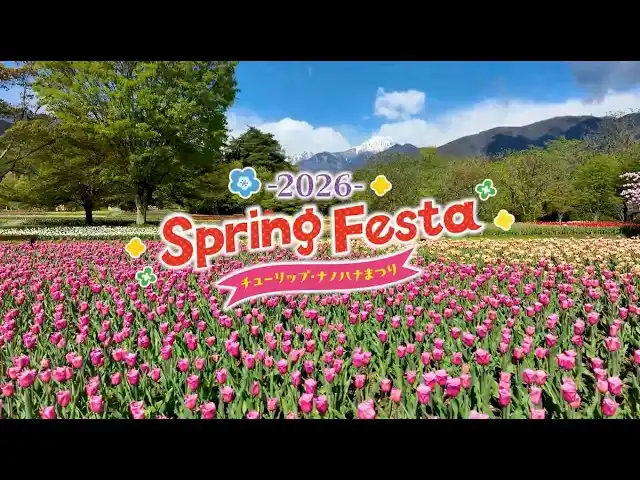 長野県安曇野市の国営アルプスあづみの公園 堀金・穂高地区で「SPRING FESTA 2026~チューリップ・ナノハナまつり~ 」を2026年5月17日まで開催中です。甲信最大のチューリップ畑と残雪の北アルプスを共にお楽しみいただけます。 |