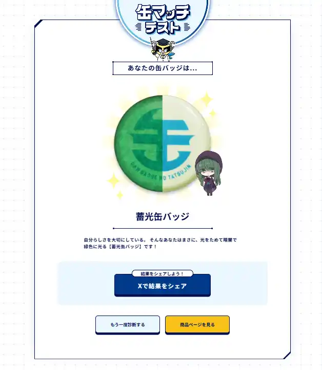 | 4月23日、「缶バッジの達人」があなたにオススメの缶バッジを診断する「缶マッチテスト」をスタート |
