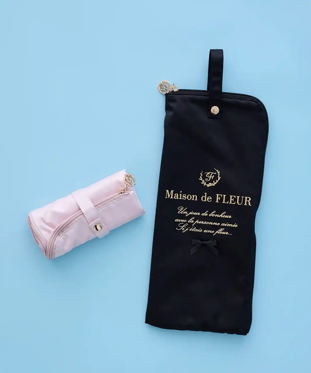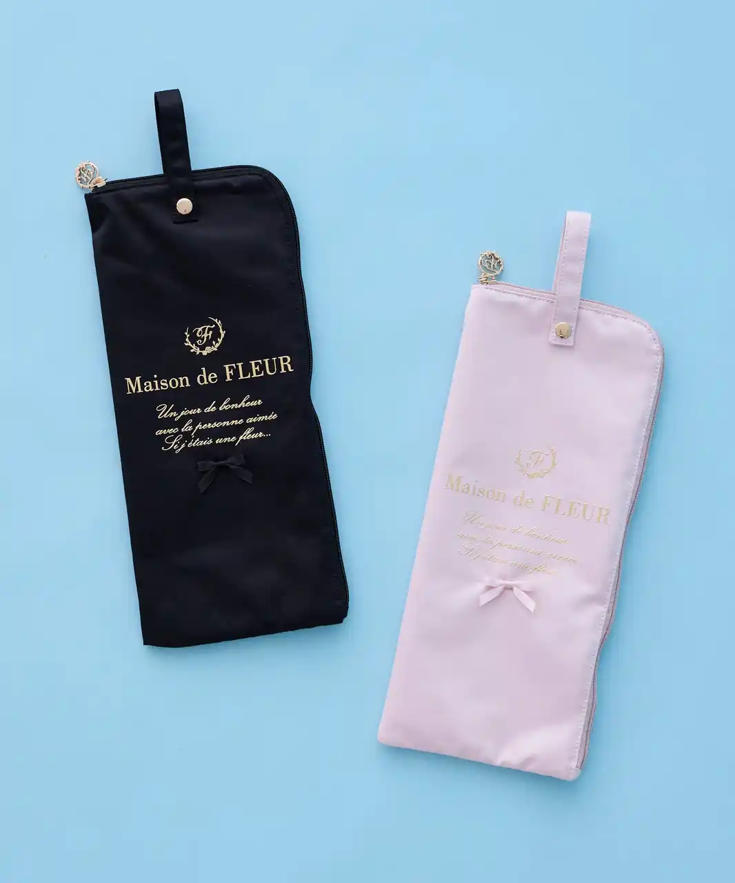 また、濡れた傘を収納してもバッグの中が濡れにくい吸水仕様のアンブレラケースや、長傘専用のアンブレラカバーをラインアップ。Maison de FLEURオリジナルのアートを施し、雨の日でも気分が高まるデザインに仕上げました。 |