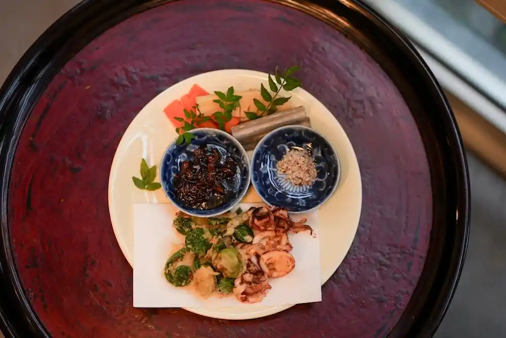さわらのグリルに「蕗の薹(ふきのとう)」とベトナムの「ロク(エビペースト)」を合わせた一皿や、ベトナム伝統の煮詰めソース「コクエット」で味わう天ぷらなど。旬の食材を、両国の発酵文化によって昇華させた限定メニューをお届けします。 |