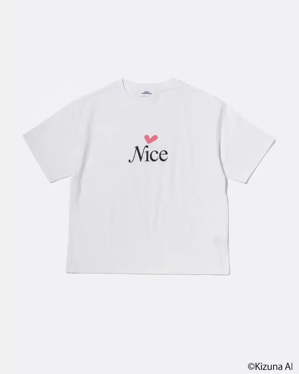 「Kizuna AI」のアイコンであるハートと「NICE」のロゴを組み合わせた「NICE WEATHER」オリジナルの1着。 |