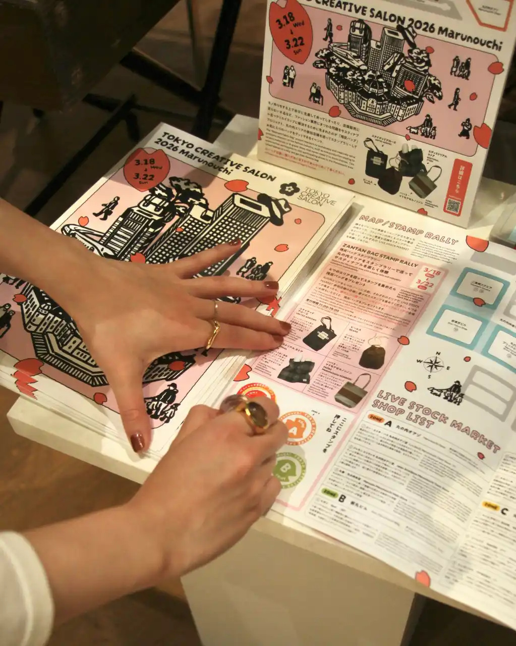 丸の内エリアでは、2026年3月18日~22日の期間、東京駅に隣接するビジネス街の特性を活かし、気軽に参加できる体験型コンテンツを実施しました。新丸ビルをメイン会場に、エリア全体を舞台とした回遊型イベントを展開しました。また、デッドストックに新たな価値を見出す「LIVE STOCK MARKET」や、街を巡って楽しむ「残反バッグ STAMP RALLY」を実施。スタイリスト小沢宏氏のディレクションのもと、各店舗が経年在庫を再編集・提案するとともに、端切れ布を活用したバッグが入手できる企画などを通じて、サステナブルな取り組みを広く紹介しました。働く街・丸の内からサステナブルなクリエイションのあり方を発信するとともに、ファッションにおける循環型の価値創出やアップサイクルの可能性を提示しました。 |