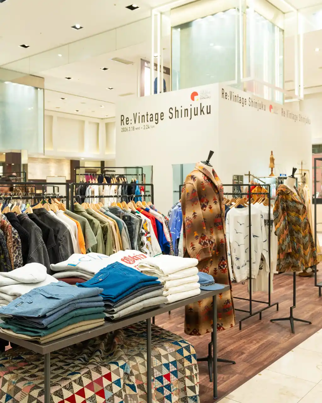 新宿エリアでは、多様な価値観が交差する街の特性を背景に、染物とヴィンテージにフォーカスしたプログラムを実施しました。国際ファッション専門職大学、東京モード学園の学生たちが制作した作品を通じて、未来志向のクリエイションを国内外に発信しました。3月14日には「SHINJUKU SO/ME/RU RUNWAY」を開催し、染色素材と古着を掛け合わせた作品を披露。地域産業と若い感性を融合させたファッション表現が展開されました。また「新宿ヴィンテージマーケット」では、原田学氏のディレクションのもと複数店舗が出店し、希少性の高いアイテムが集結。ヴィンテージカルチャーの魅力を体感できる機会となりました。 |