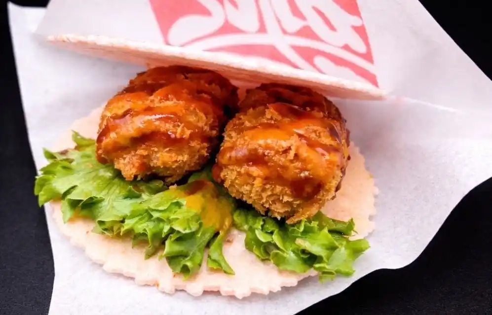 パリッと香ばしい磯の香りが漂う「かにべえ」で、ホクホクでジューシーなかにクリームコロッケを贅沢にプレス。スナック感覚でありながら、満足感もしっかり味わえる、食べ歩きにもぴったりの進化型ワンハンドフードです。 |